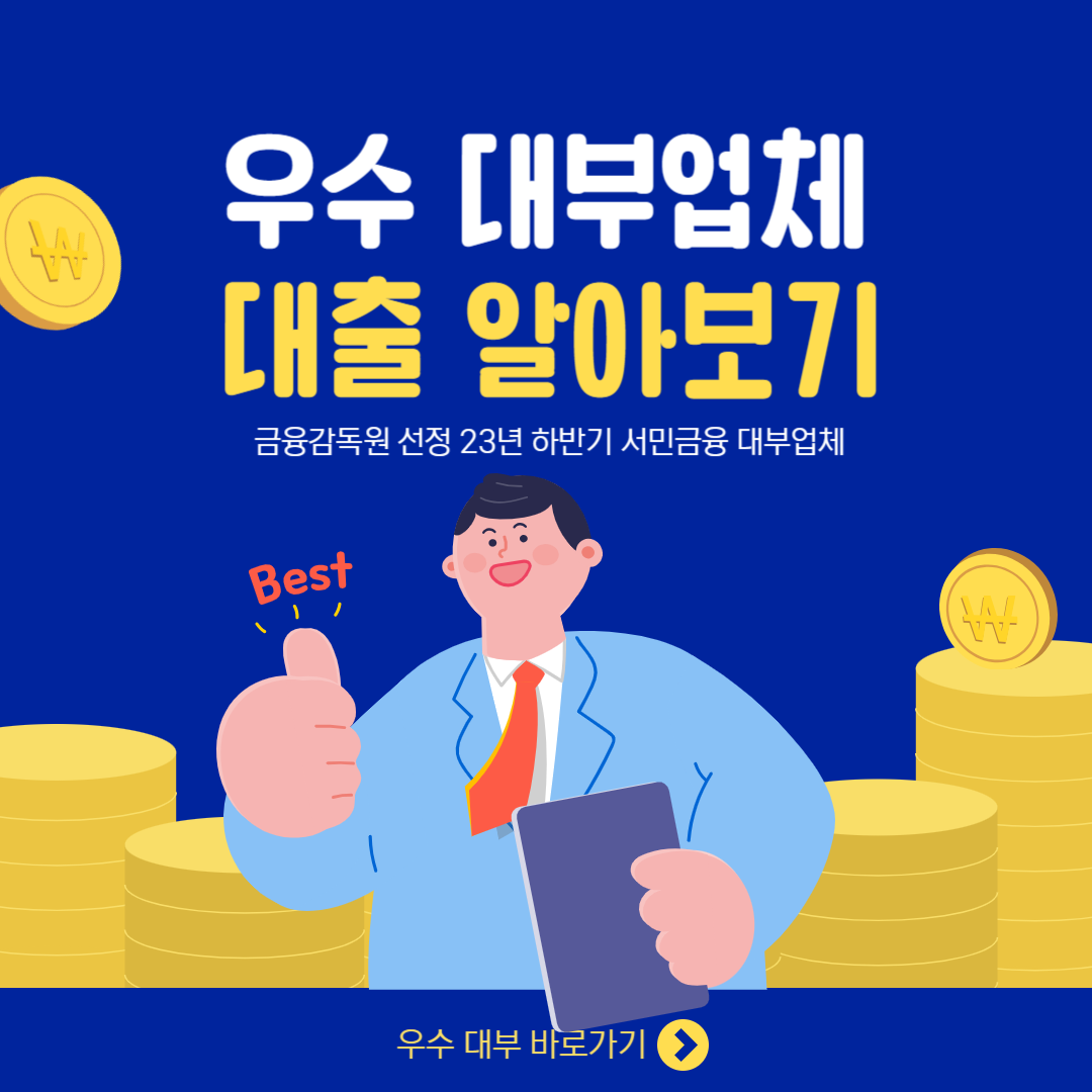 그럼 우수 대부업체에 대해 안내해 드리겠습니다. 우선, 급한 돈이 필요하신 분은 아래에서 우수 대부업체를 통해 신청하시길 권해드립니다.