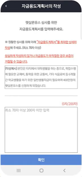 자금용도계획서를 작성하시기 바랍니다. 말 그대로 대출이 필요한 계기와 대출 계획에 대해 구체적으로 서술형으로 작성해 주시면 보증신청이 완료됩니다.