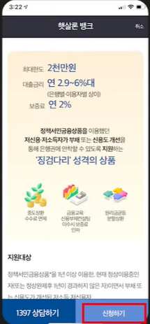 햇살론 뱅크는 내가 대출 대상인지 미리 확인해 볼 수 있는 방법이 있습니다.