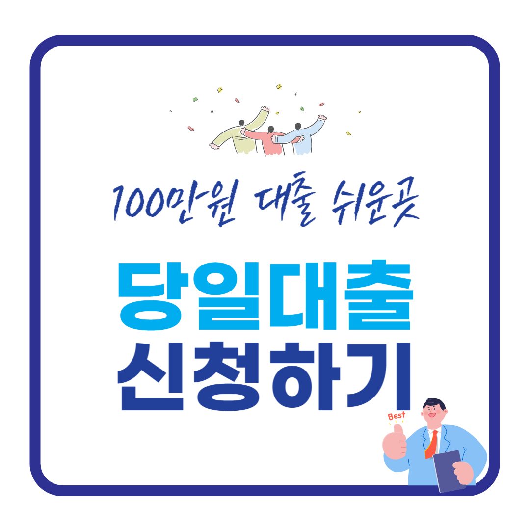 지금 급하게 100만 원 대출이 필요하신 분! 당일 즉시 대출을 받으려면 알아둬야 할 Best 정보를 아래에서 쉽고 빠르게 확인해보실 수 있습니다.